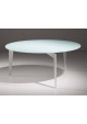 Couchtisch weiß Glasplatte Metallgestell, Durchmesser 80 cm